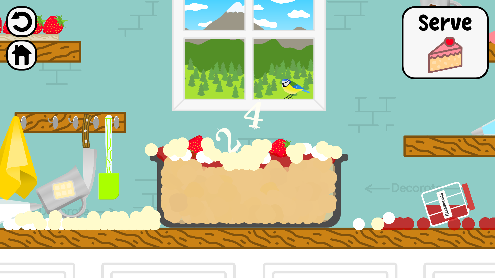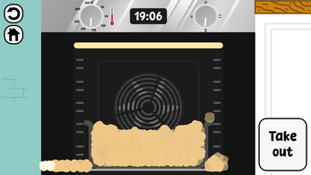 If you're ready with the dough, baking, or decorating, click the "Bake", "Take out" or "Serve" button.